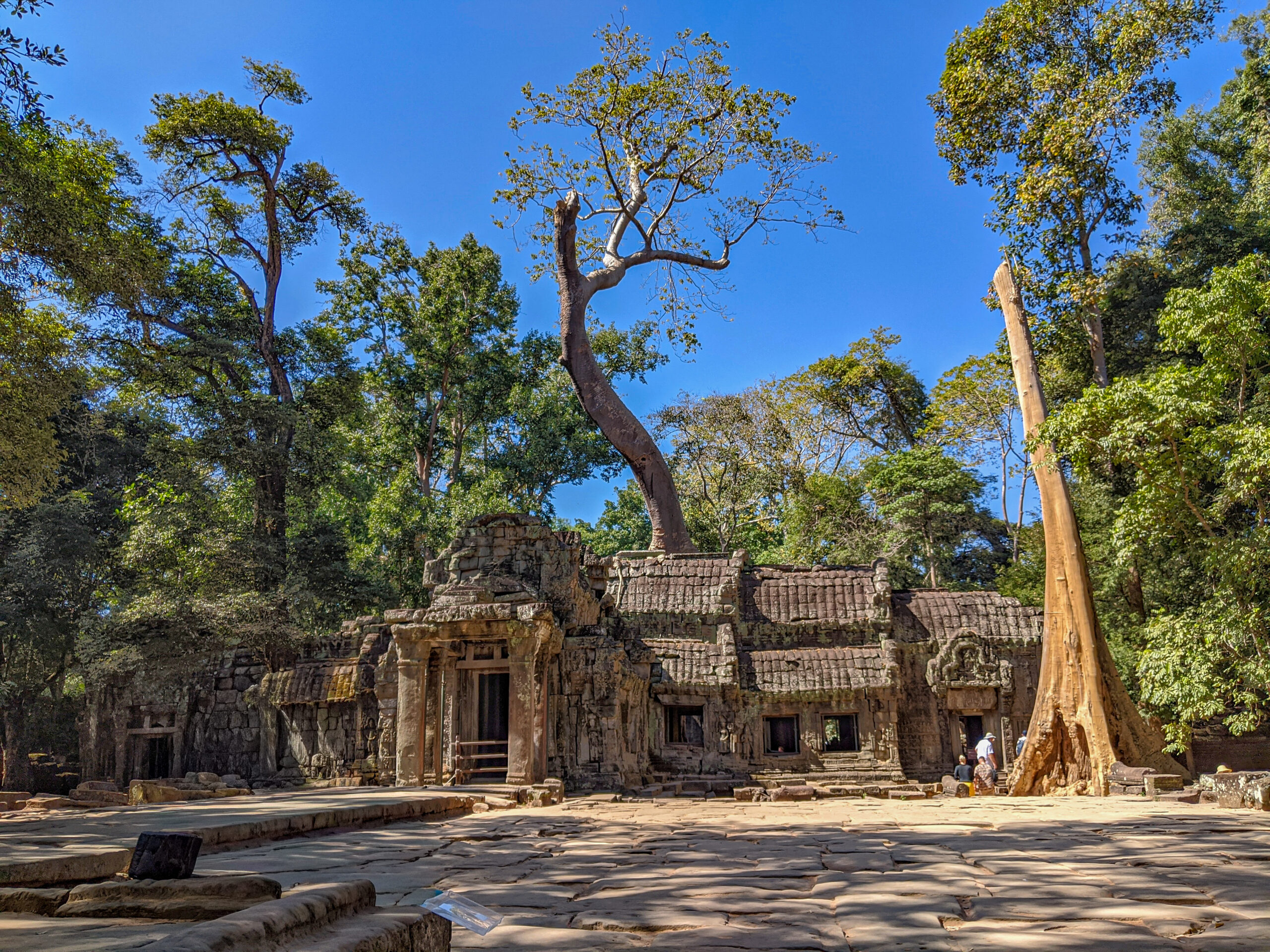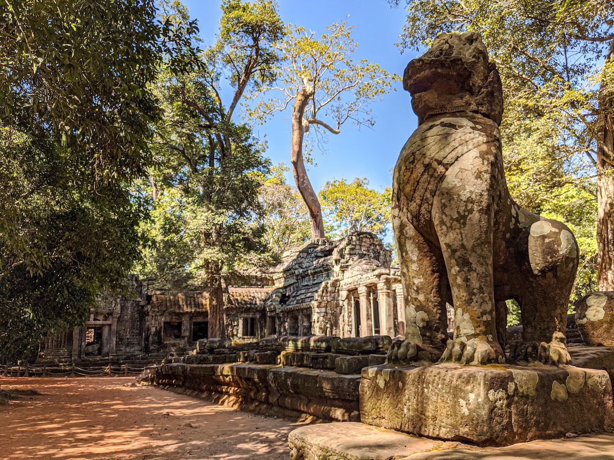 As you cycle along scenic, shaded backroads (with occasional gentle bumps), the adventure unfolds with visits to a series of remarkable temples: Prasat Kravan, Banteay Kdei, Ta Prohm. From here, continue cycling to the ancient capital of the Khmer Empire Angkor Thom. Enter through the South Gate, a monumental stone arch carved with elephant motifs and four giant serene faces include Bayon Temple, Terrace of the Elephants, Terrace of the Leper King.